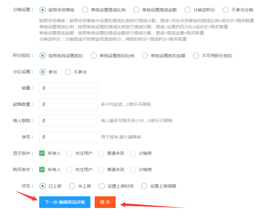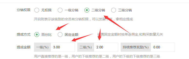 然后下面是設置分銷的提成比例,統一設置,也可以每個產品里面單獨設置
